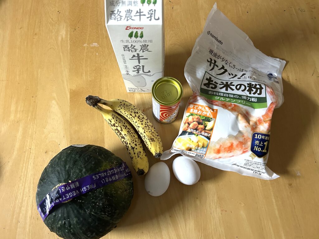 かぼちゃとバナナの米粉パウンドケーキの材料