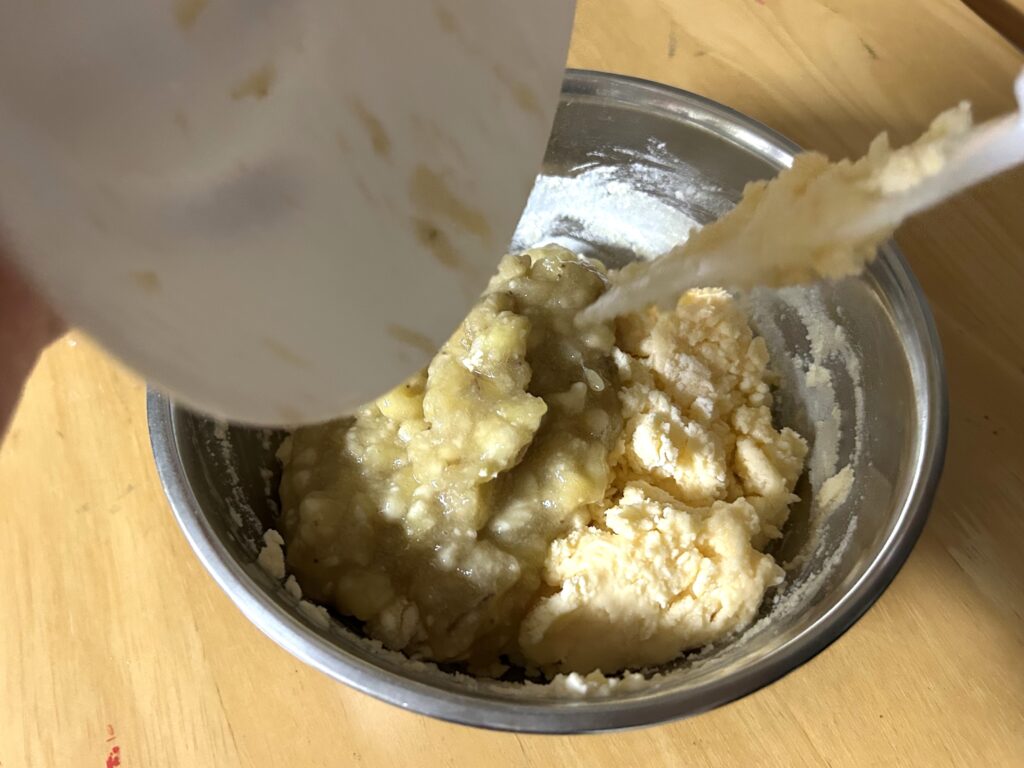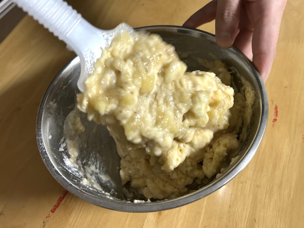 更に、潰したバナナを加えてよく混ぜ合わせます。