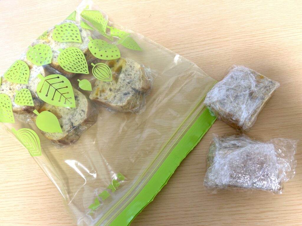 切った後ラップで包んで、ジップロックに入れて冷凍保存できます。
