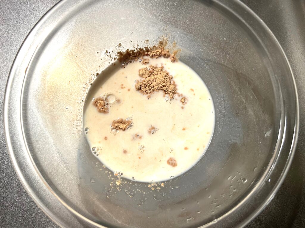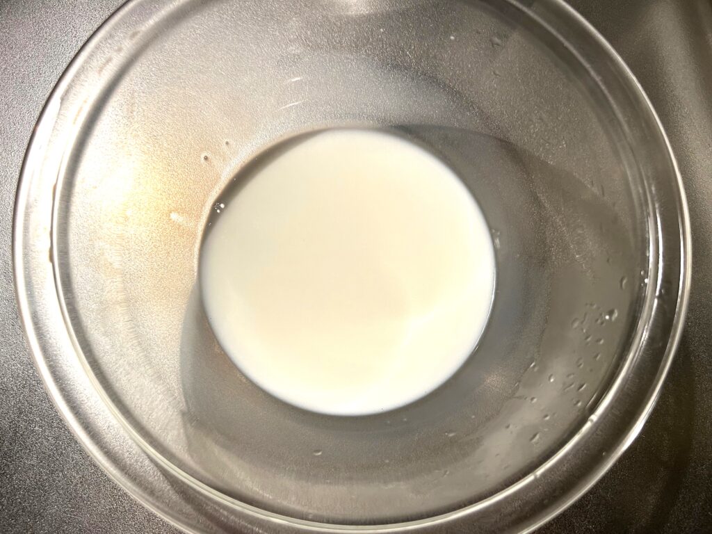 ①牛乳にきな粉を溶かす。