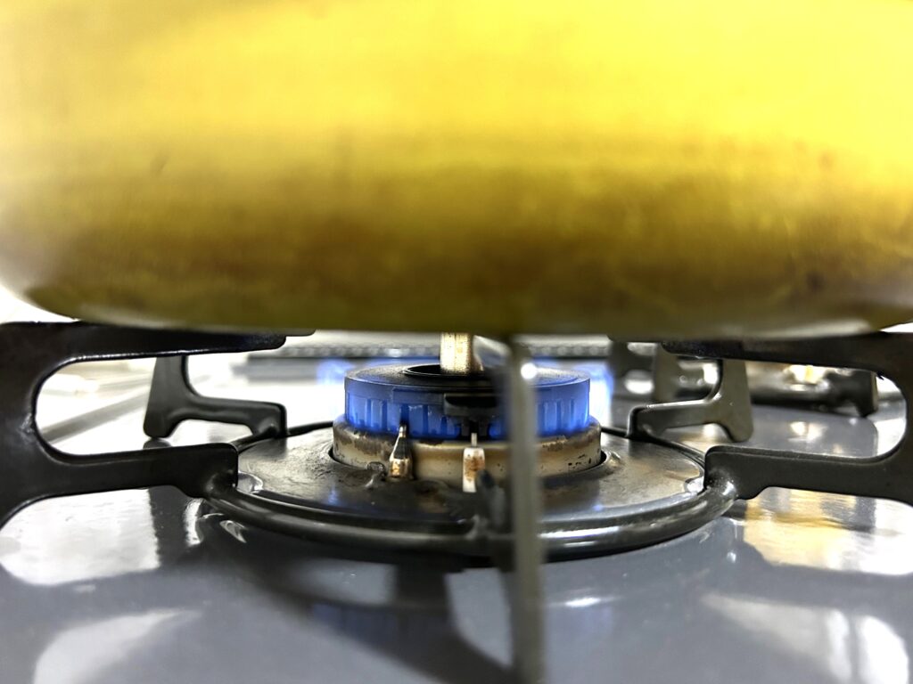 フライパンに油を薄く敷いて、弱中火に熱します。フライパン用のアルミシートを使用する場合は油は不要です。